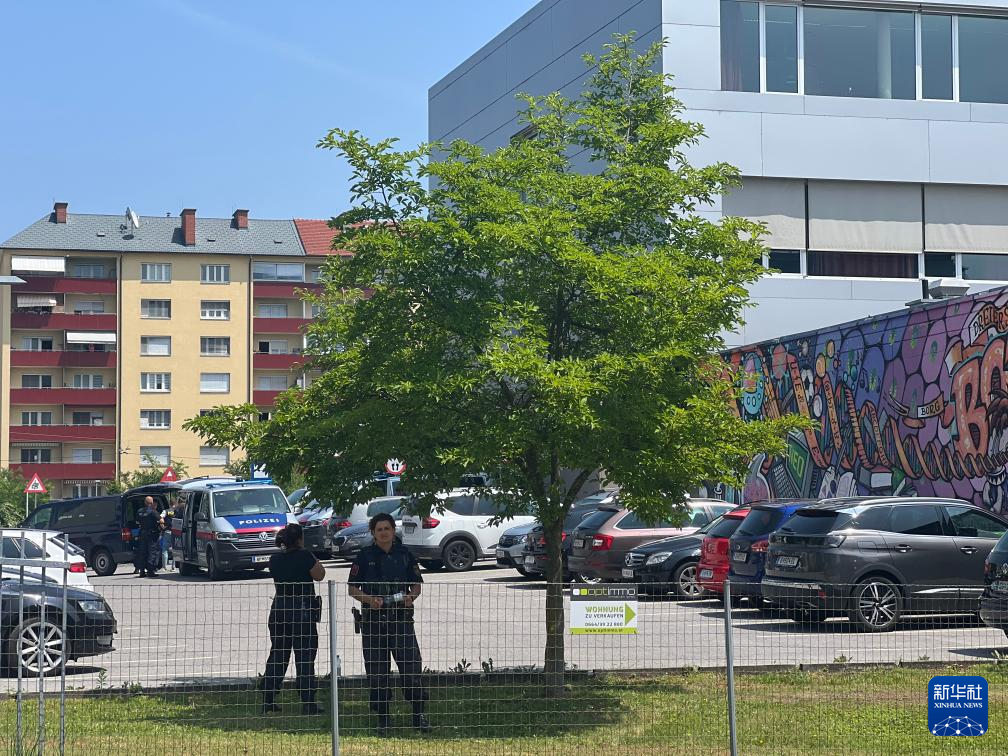 6月10日,警察在奥地利格拉茨市枪击事件现场附近执勤。