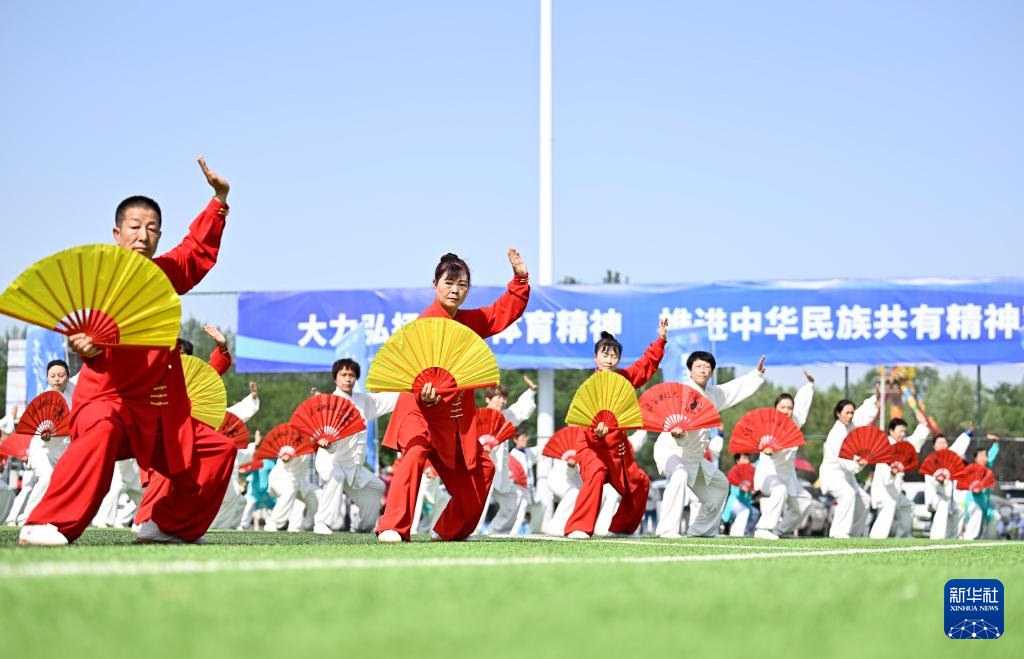 6月10日,群众在活动上参加千人健身操展演(无人机照片)。