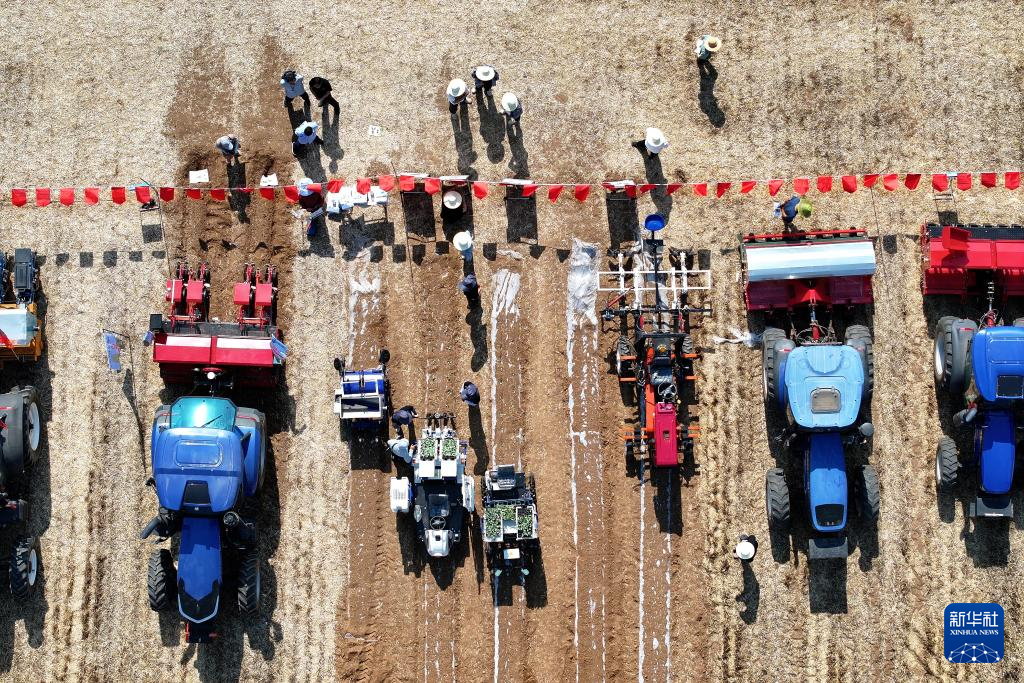 这是2025中国农机推广“田间日”活动现场(6月12日摄,无人机照片)。