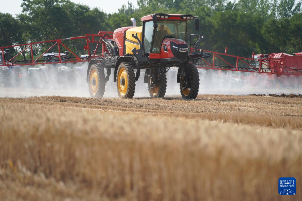 活动现场展示的自走式喷雾机(6月12日摄)。
