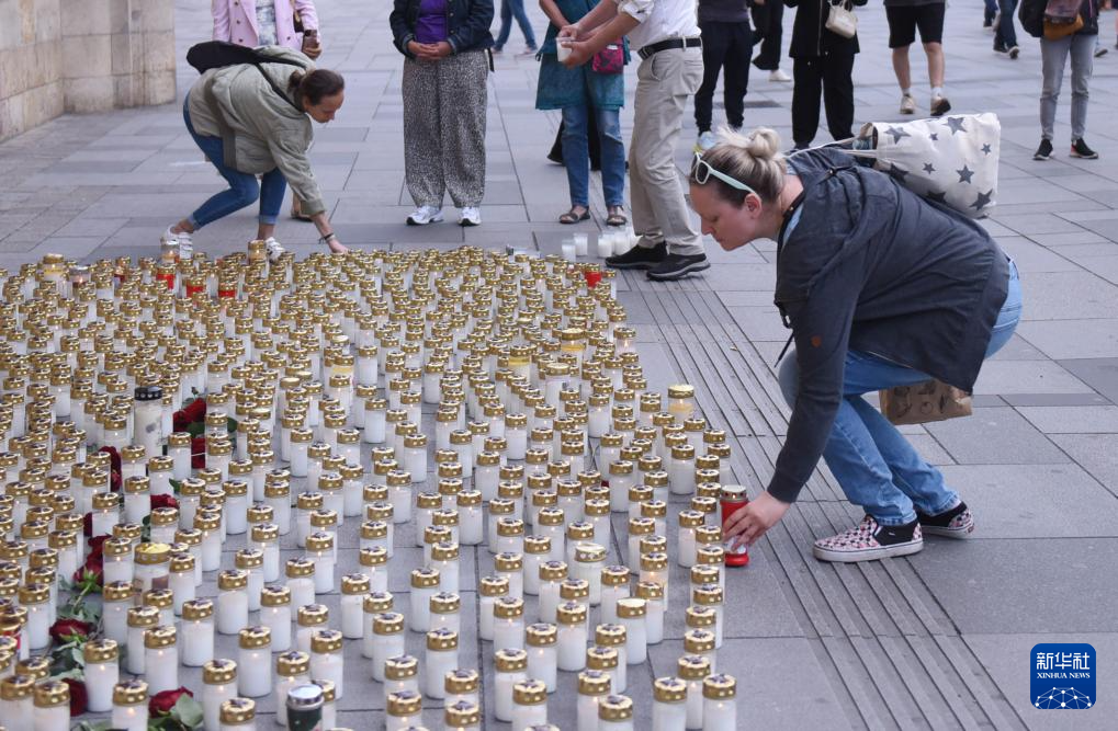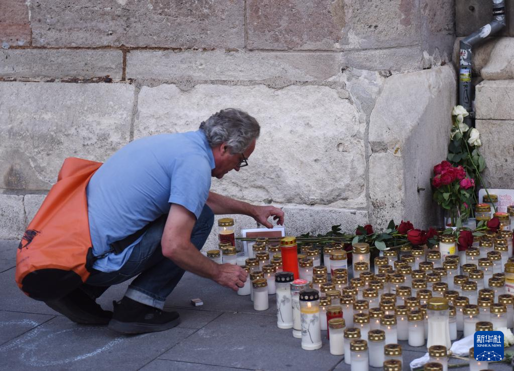 6月11日,在奥地利首都维也纳,人们在斯蒂芬教堂广场摆放蜡烛,悼念校园枪击案遇难者。