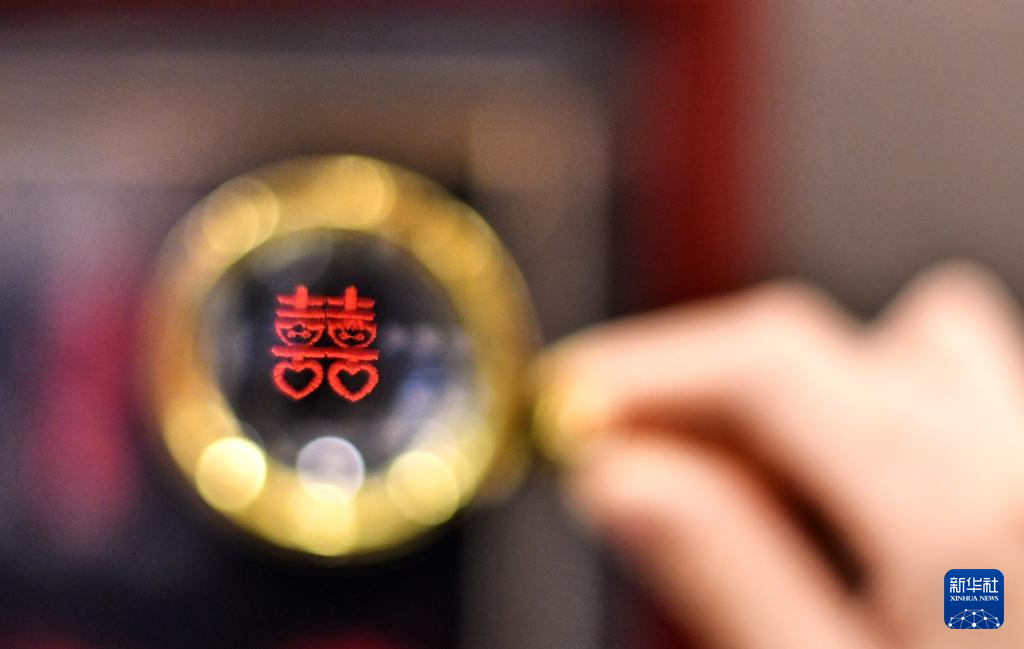 这是位于北京王府井商圈内的隆庆祥总店内展示的为定制服装刺绣的字样(6月10日摄)。