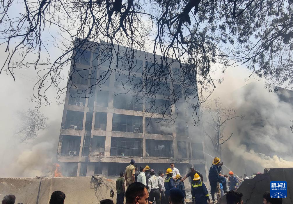 6月12日,在印度古吉拉特邦艾哈迈达巴德,客机失事现场冒起浓烟。
