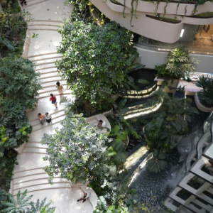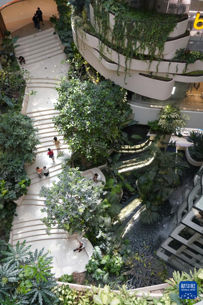 6月11日,人们在西安南飞鸿·乐荟中心休闲纳凉。