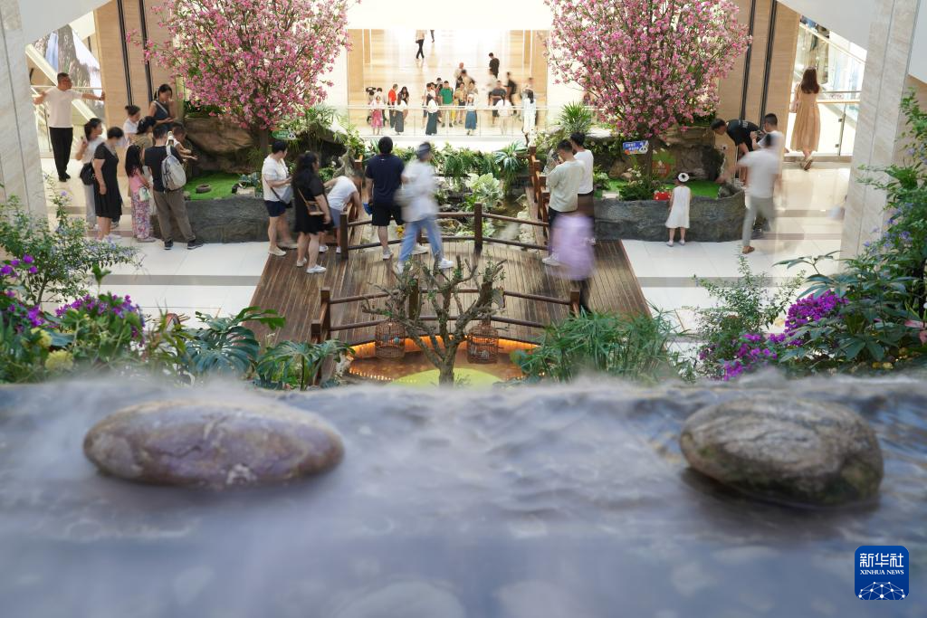近日,陕西西安高温天气持续,市民游客走进凉爽的商场室内,购物休闲,享受清凉。