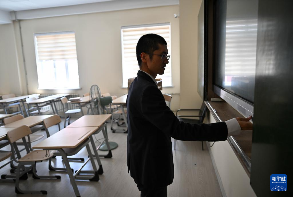 6月1日,夏冉在位于杜尚别的塔吉克斯坦民族大学孔子学院检查教学设备。