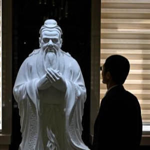 6月1日,在位于杜尚别的塔吉克斯坦民族大学孔子学院,夏冉在孔子雕像前驻足。