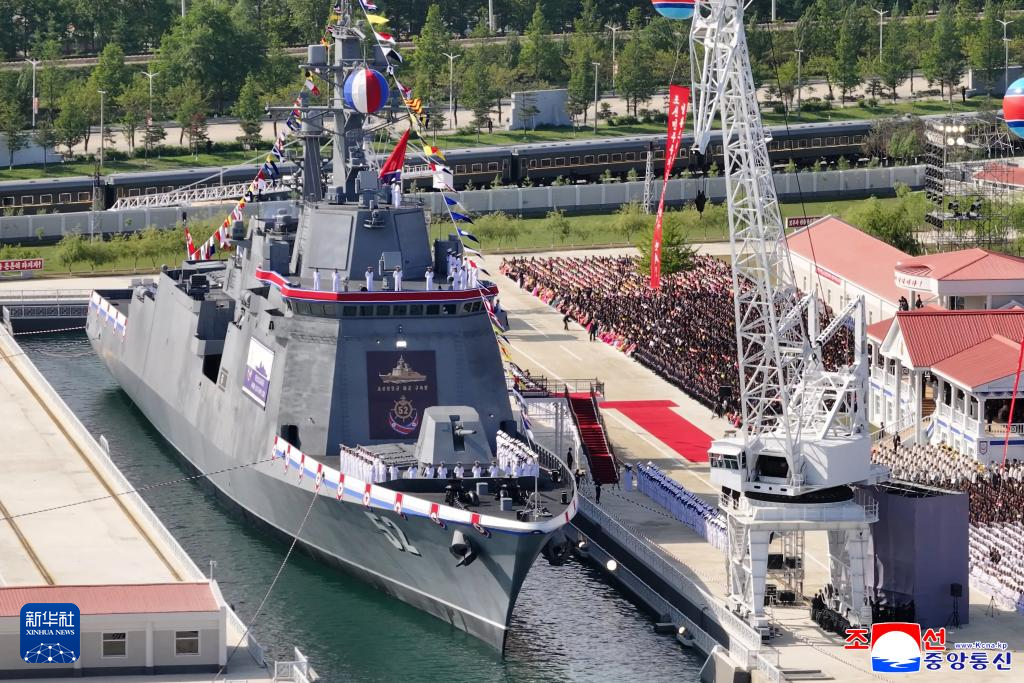 这是朝中社发布的朝鲜“崔贤”级二号舰下水仪式现场画面。