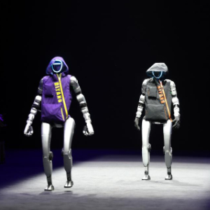 6月12日晚,机器人模特在天津时装秀上展示时装。