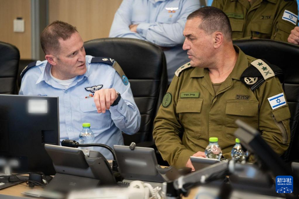 这张6月13日由以色列国防军发布的照片显示,以军总参谋长扎米尔(右)在以色列空军战情室监看以军对伊朗的打击。