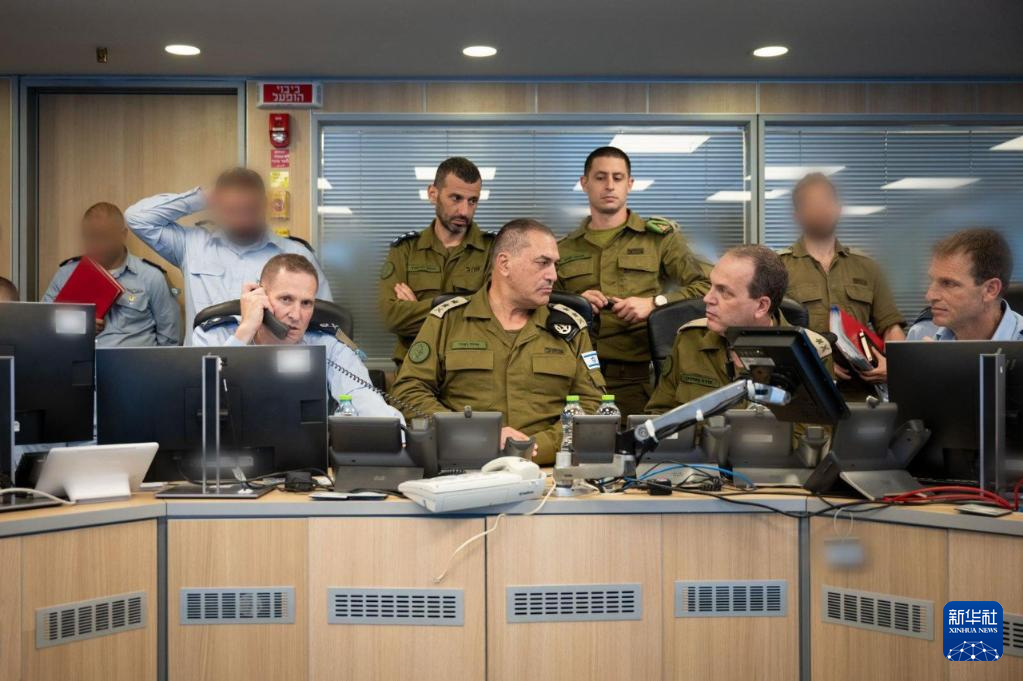 这张6月13日由以色列国防军发布的照片显示,以军总参谋长扎米尔(中)在以色列空军战情室监看以军对伊朗的打击。