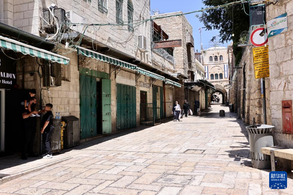 这是6月13日在耶路撒冷老城穆斯林区拍摄的空旷的街道。