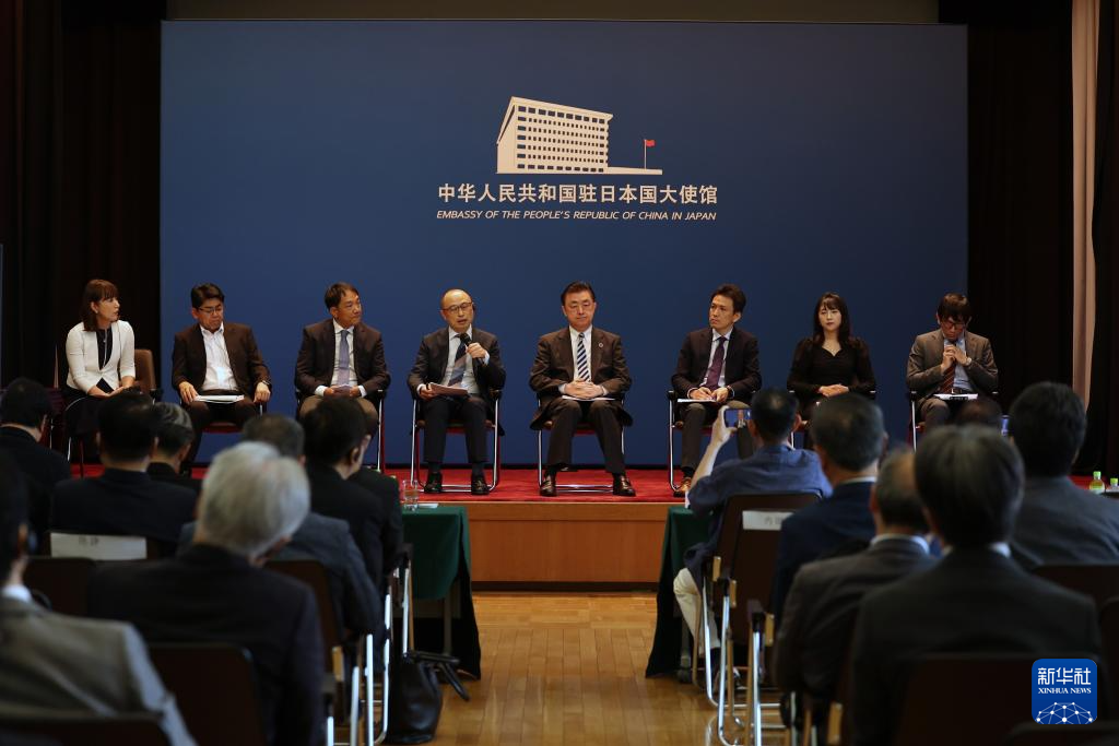6月12日,在日本东京的中国驻日本大使馆,嘉宾在“中日媒体沙龙”的专题讨论上交流。