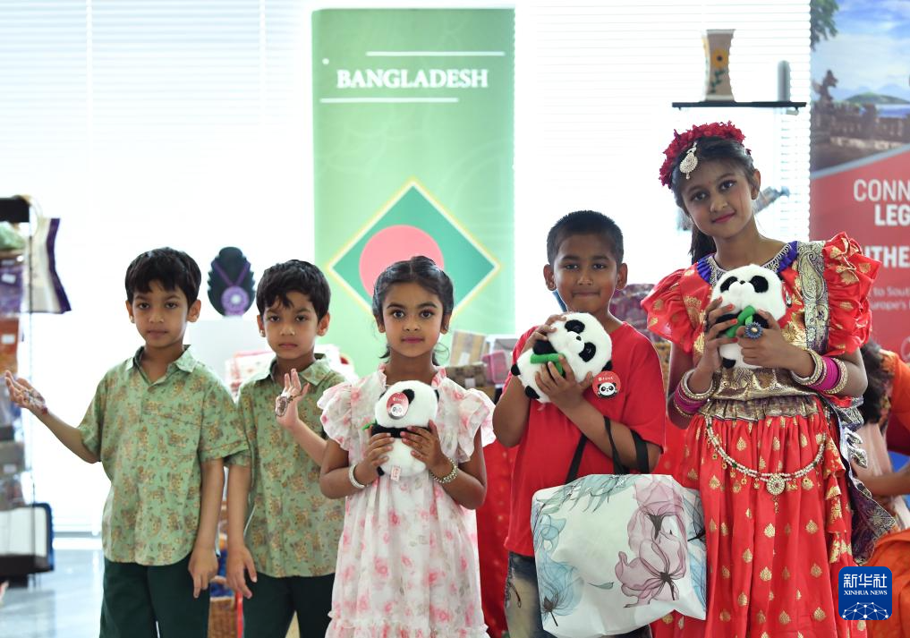 6月11日,在瑞士日内瓦世界知识产权组织总部举行的第五届“亚洲文化节”上,来自孟加拉国的小朋友展示他们购买的大熊猫玩偶。