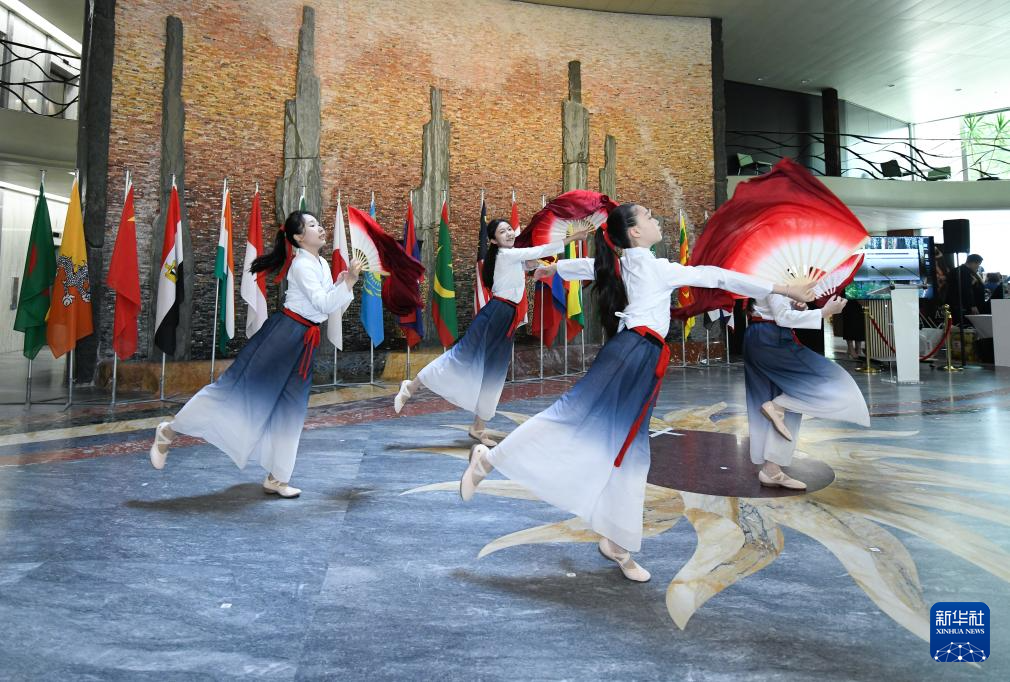 6月11日,在瑞士日内瓦世界知识产权组织总部举行的第五届“亚洲文化节”上,来自中国常驻日内瓦代表团的表演者表演中国扇舞《万疆》。中国常驻日内瓦代表团参与了时尚展演、文化表演及工艺品和美食义卖等多个环节,借此机会呈现中华传统文化底蕴,展现蓬勃向上的时代精神,并宣介全球文明倡议。