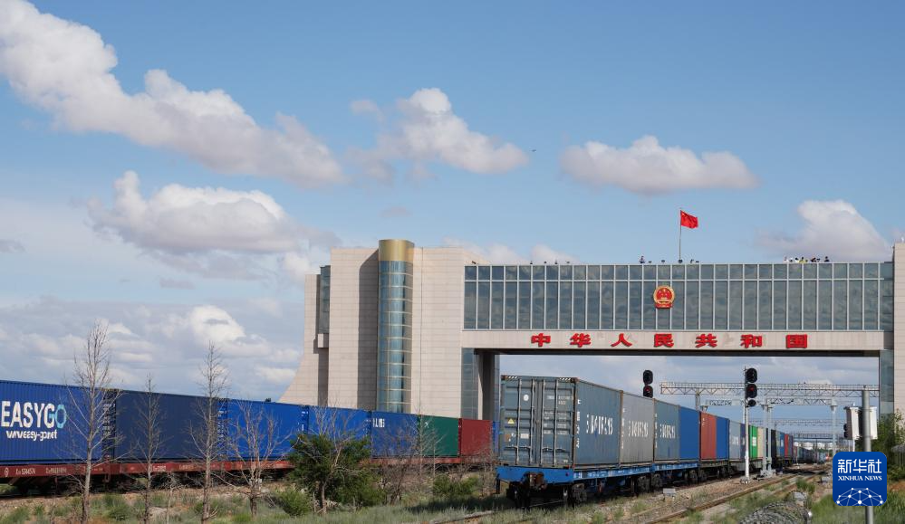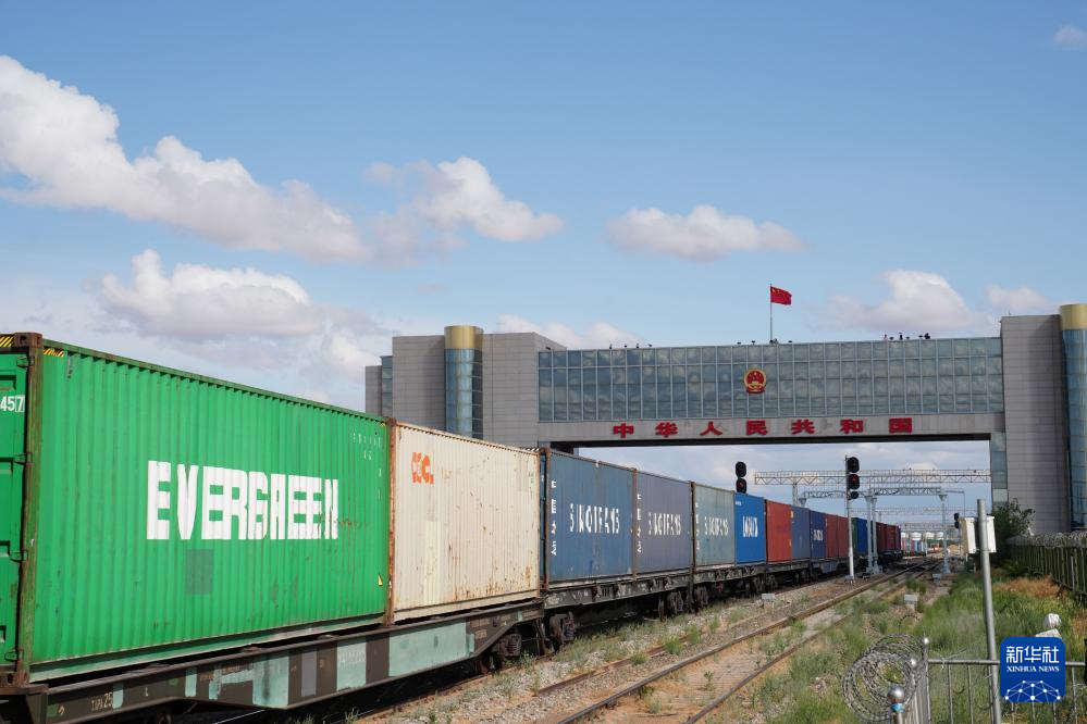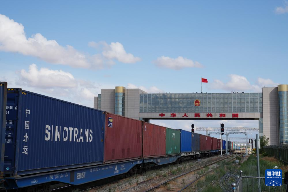 6月14日,一列回程中欧班列通过二连浩特国门。