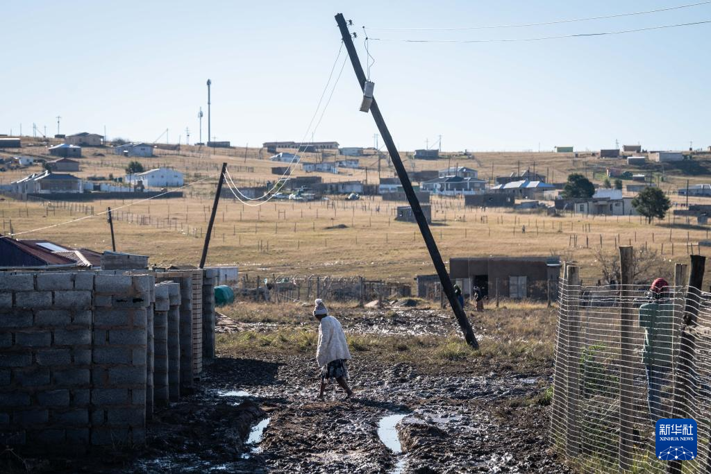 6月13日,在南非东开普省姆塔塔,一位居民在洪水过后的泥泞中出行。