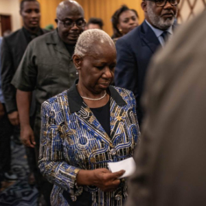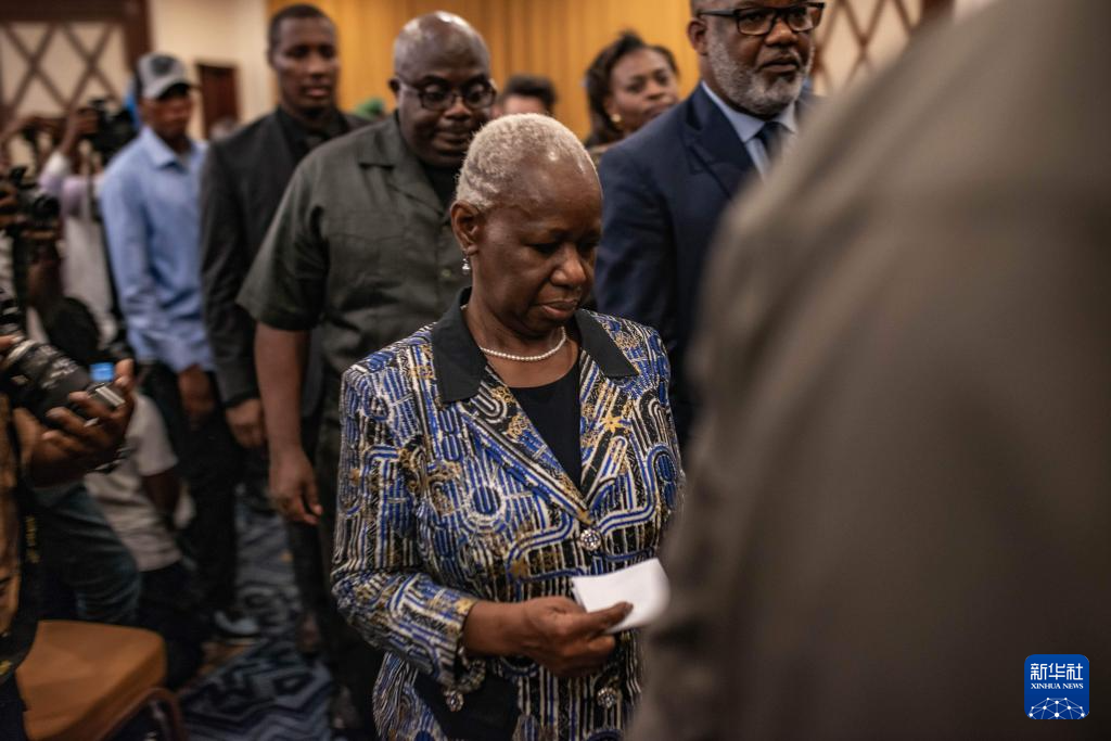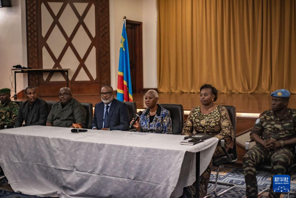 6月13日,联合国秘书长刚果(金)问题特别代表凯塔(右三)在刚果(金)东部北基伍省首府戈马出席新闻发布会。