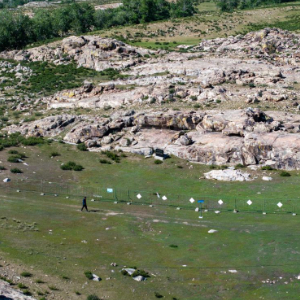 5月23日,在新疆阿勒泰市汗德尕特蒙古族乡,张永军检查保护岩画的围栏。
