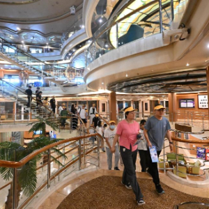 6月14日,游客在东方邮轮“梦想”号内参观。