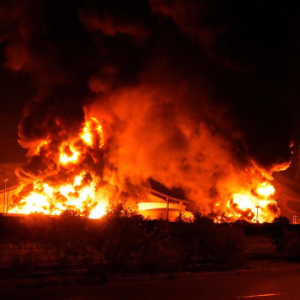 这是6月15日凌晨拍摄的伊朗首都德黑兰附近遭以色列袭击起火的储油设施。