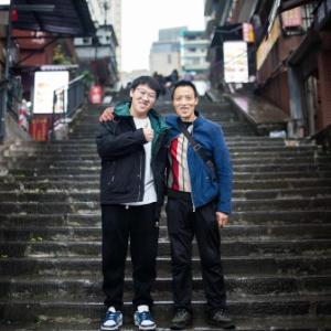 冉光辉(右)和儿子冉俊超在重庆朝天门批发市场合影(2024年11月24日摄)。