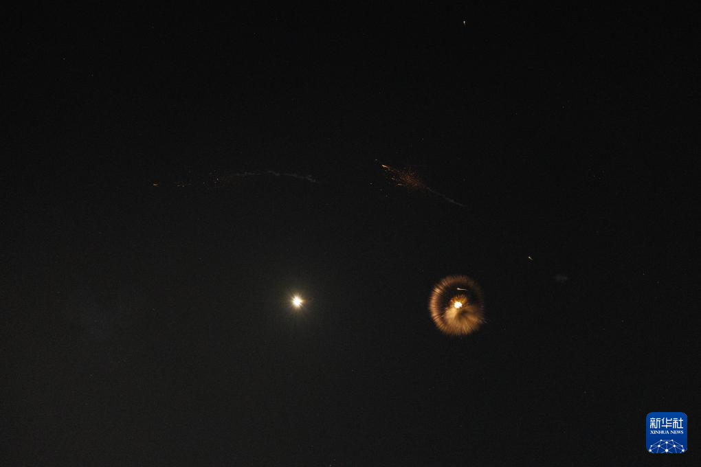 6月14日,在以色列海法上空,来袭导弹遭拦截发生爆炸。