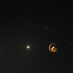 这是6月14日在耶路撒冷上空拍摄的导弹轨迹(左侧)。
