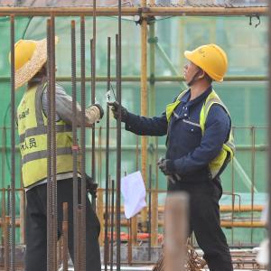 6月16日,中铁二十局工人在南宁市鸡村城中村改造项目建设现场施工作业。