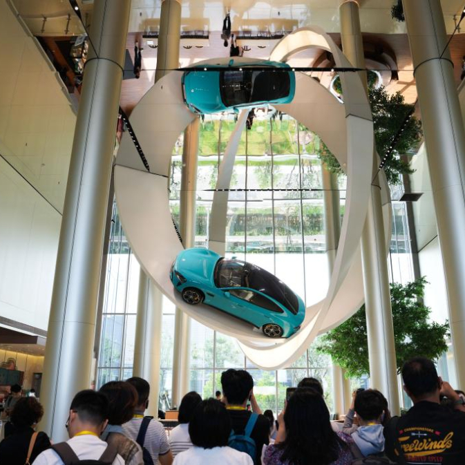 6月16日,参观者在北京小米汽车工厂的科技展厅了解小米超级电机。
