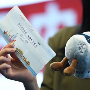 6月16日,在瑞士日内瓦国际机场,MU217航班乘客展示为纪念上海至日内瓦首条直飞航线开通制作的登机牌和纪念品。