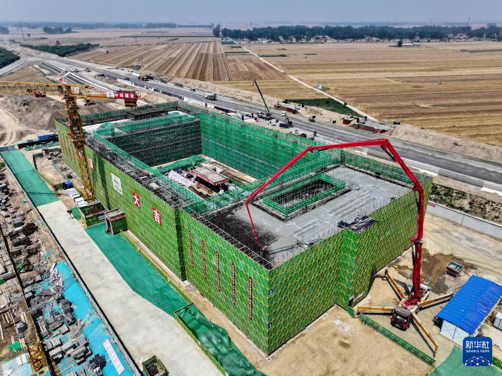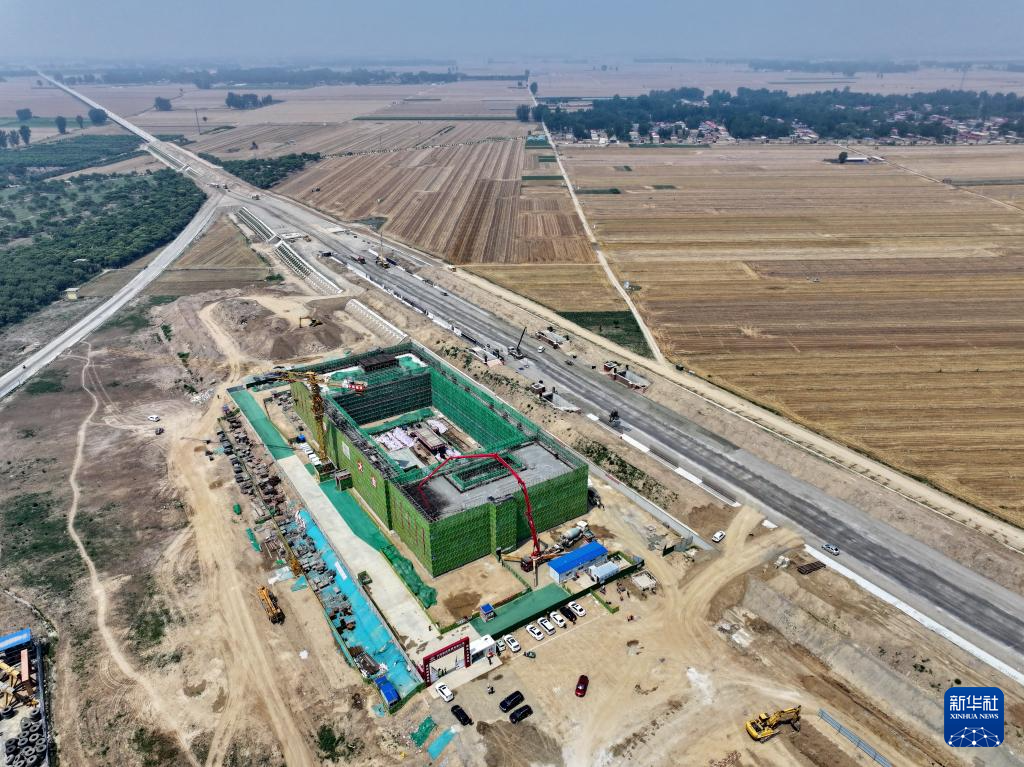 雄忻高铁望都北站建设现场(6月18日摄,无人机照片)。