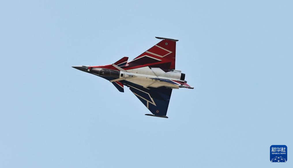 6月17日,在法国巴黎近郊布尔歇机场举行的第55届巴黎航展上,阵风战斗机进行飞行表演。