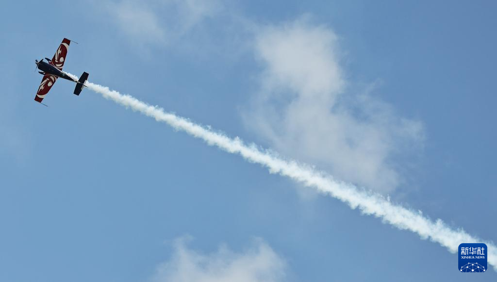 6月17日,在法国巴黎近郊布尔歇机场举行的第55届巴黎航展上,法国空军的EXTRA 330飞机进行飞行表演。