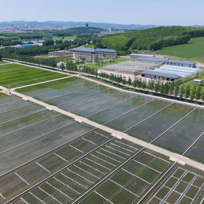 这是6月18日拍摄的中国水稻研究所北方水稻研究中心和试验田(无人机照片)。