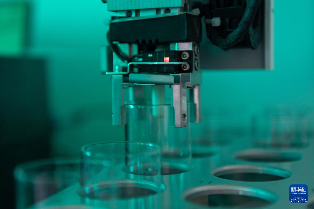 6月18日,在中国水稻研究所北方水稻研究中心,科研人员操控土壤有机质分析机器人分析黑土中的有机质含量。