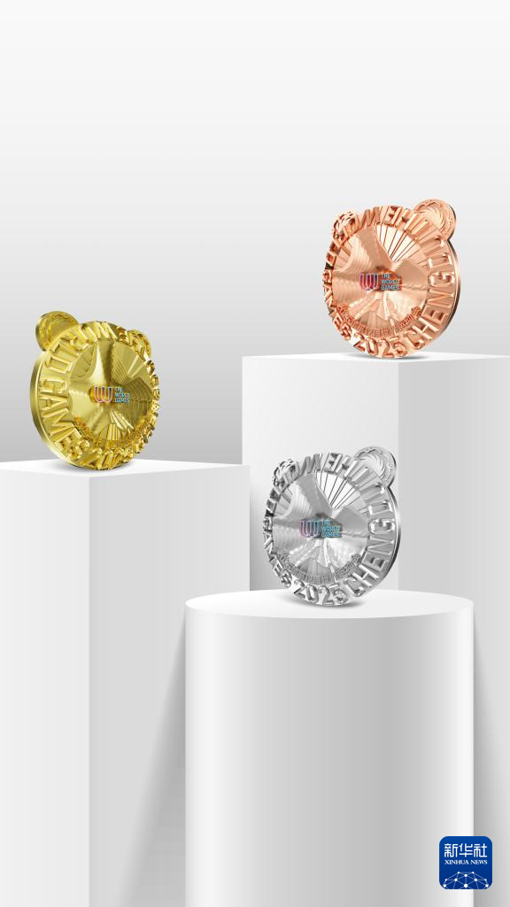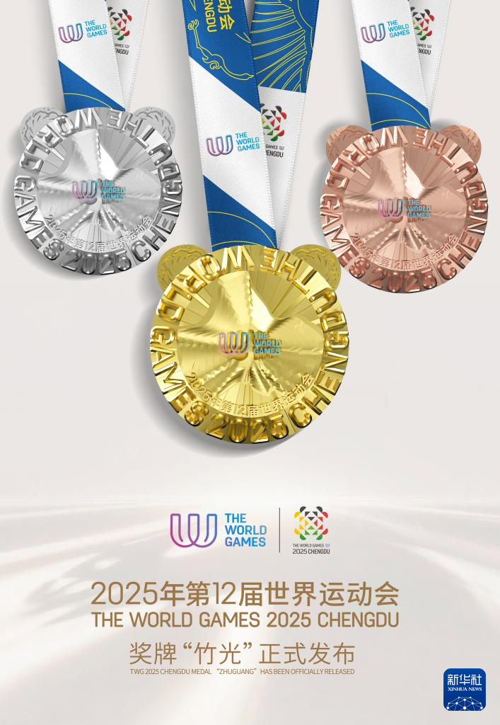 6月19日,2025年第12届世界运动会(成都世运会)奖牌“竹光”正式亮相。“竹光”奖牌整体呈现大熊猫“蜀宝”造型。奖牌正面,国际世运协会会徽居中醒目,赛事中英文名称环绕呼应,并巧妙融入太阳神鸟纹饰,与暗合城市轮廓流动凹凸线条,在底部营造出层层光芒;奖牌背面,成都世运会会徽居于中心,设计灵感源于象征高洁与坚韧的中国竹文化——竹节与竹叶造型。