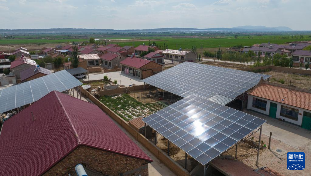 这是6月20日拍摄的宁夏同心县河西镇同德村,该村建设完成的分布式光伏已全部并网发电(无人机照片)。