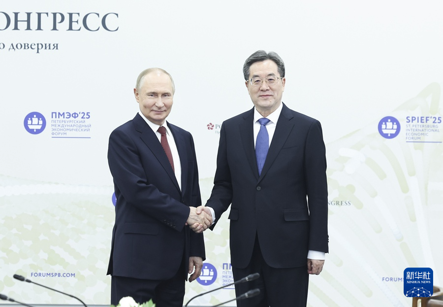 6月20日,中共中央政治局常委、国务院副总理丁薛祥在圣彼得堡会见俄罗斯总统普京。