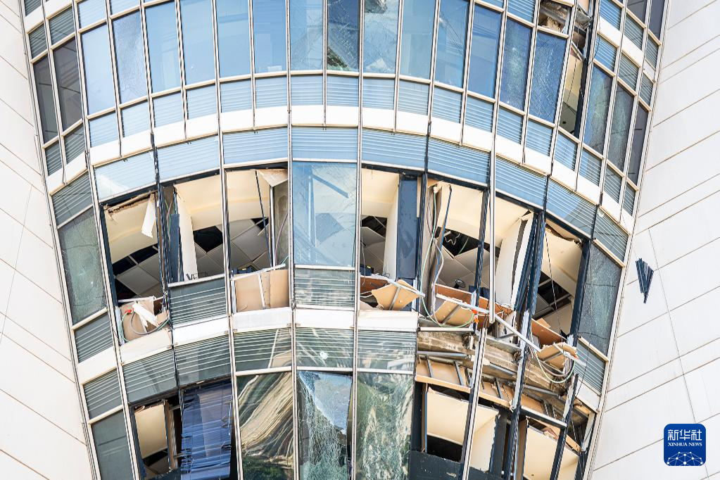 这是6月20日在以色列北部海法拍摄的在导弹袭击中受损的建筑。