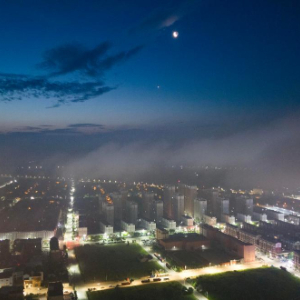 6月22日凌晨在黑龙江省佳木斯市富锦市拍摄的金星伴月(无人机照片)。