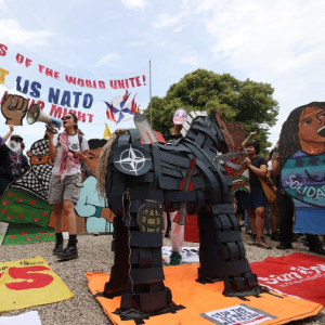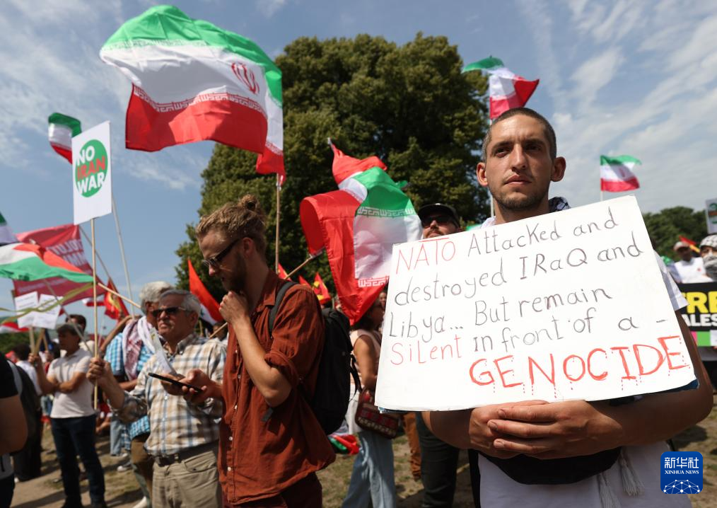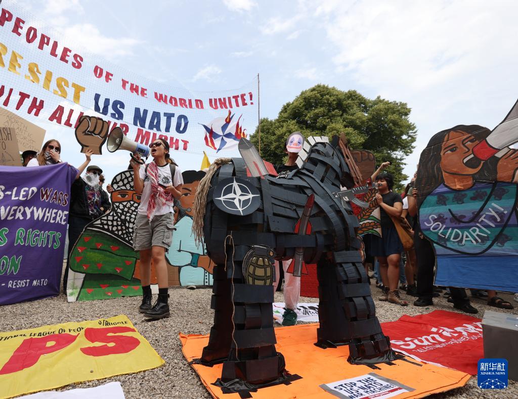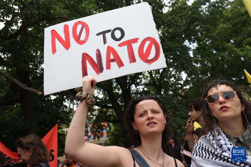 6月22日,民众在荷兰海牙参加反北约集会。