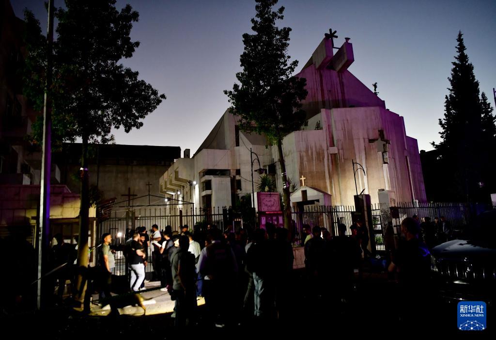 6月22日,人们在叙利亚首都大马士革东部发生爆炸的教堂外聚集。