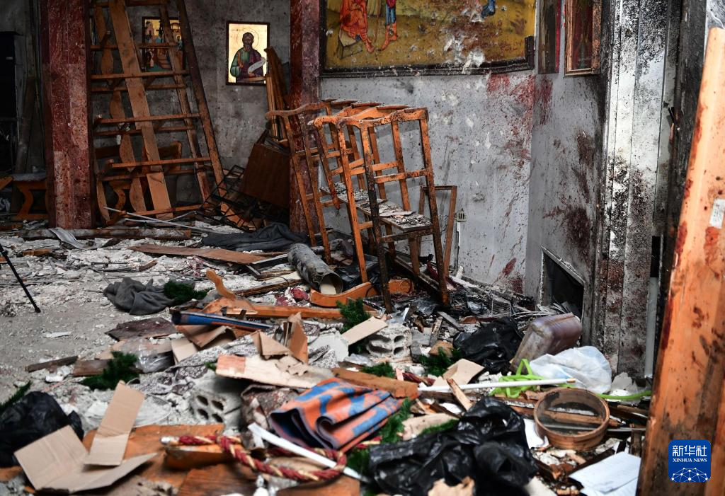 这是6月22日拍摄的叙利亚首都大马士革东部发生爆炸的教堂内景。