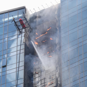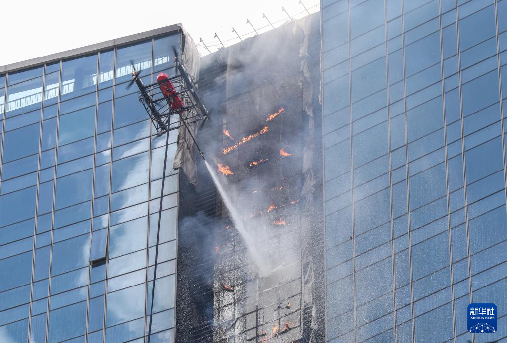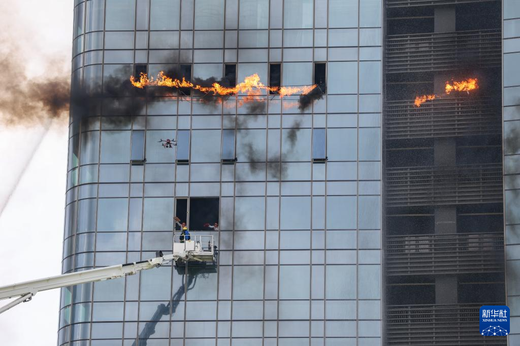 当日,“应急使命·2025”城市高层建筑火灾扑救演习在广东省深圳市举行。