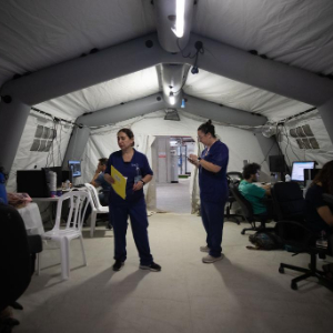 以伊冲突爆发以来,以色列中部地区频遭导弹袭击。位于拉马特甘的谢巴医疗中心在地下停车库以及防空设施内打造战时医院,开辟不同类型的“加固型院区”,计划将所有位于非加固区域的病患和科室转移。