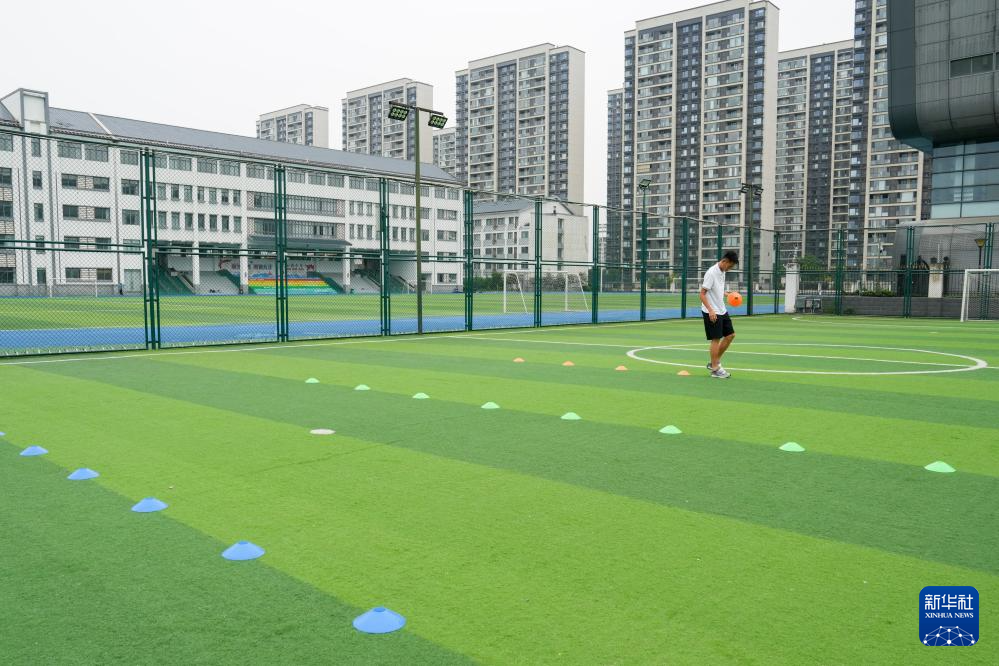 6月22日,卢志勇在校队足球训练课开始前进行准备。