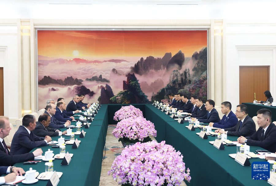6月24日,国家副主席韩正在北京集体会见来华出席上海合作组织成员国安全会议秘书第二十次会议外方代表团团长。