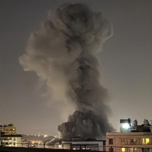 当地时间6月24日凌晨1时23分,位于德黑兰的伊朗国防部大楼附近,在遭袭后冒起滚滚浓烟。