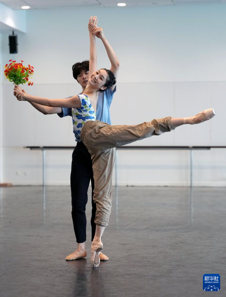 6月25日,在上海国际舞蹈中心排练厅,上芭主要演员郭文槿(左)、许靖昆在排练。